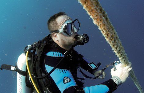 * bestehend aus: Tauchanzug, Tarierjacket, Atemregler, Pressluftflasche, Kompass, Tauchcomputer, Gewichtssystem