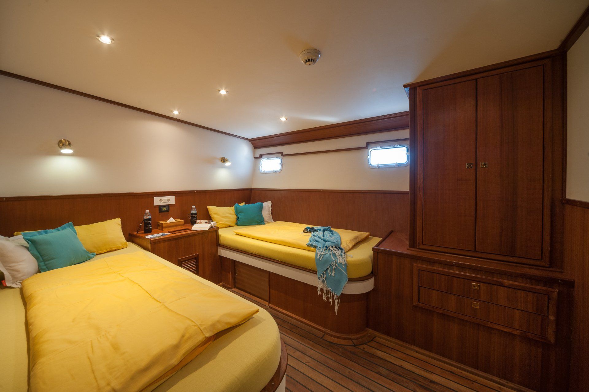 | Kabinen mit Meerblick | 1 x Zodiak mit 100 PS sowie 1 x mit 40 PS Yamaha Aussenborder | Notfallsauerstoff: 1 x Wenoll-System + 1 x 50 Liter + 1 x 3 L |